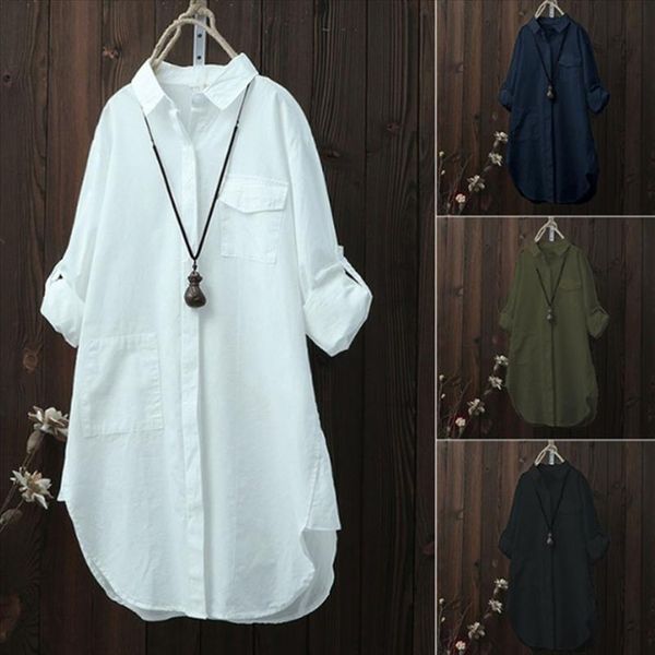 fashion cotton and linen women shirts blouses casual loose solid color long sleeve button shirt turn down collar white shirts