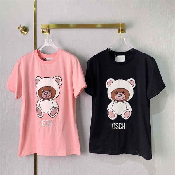 fashion cotton t-shirts dress for women cartoon bear print ins internet designer t shirt short sleeve female tees tshirt wome3301, White