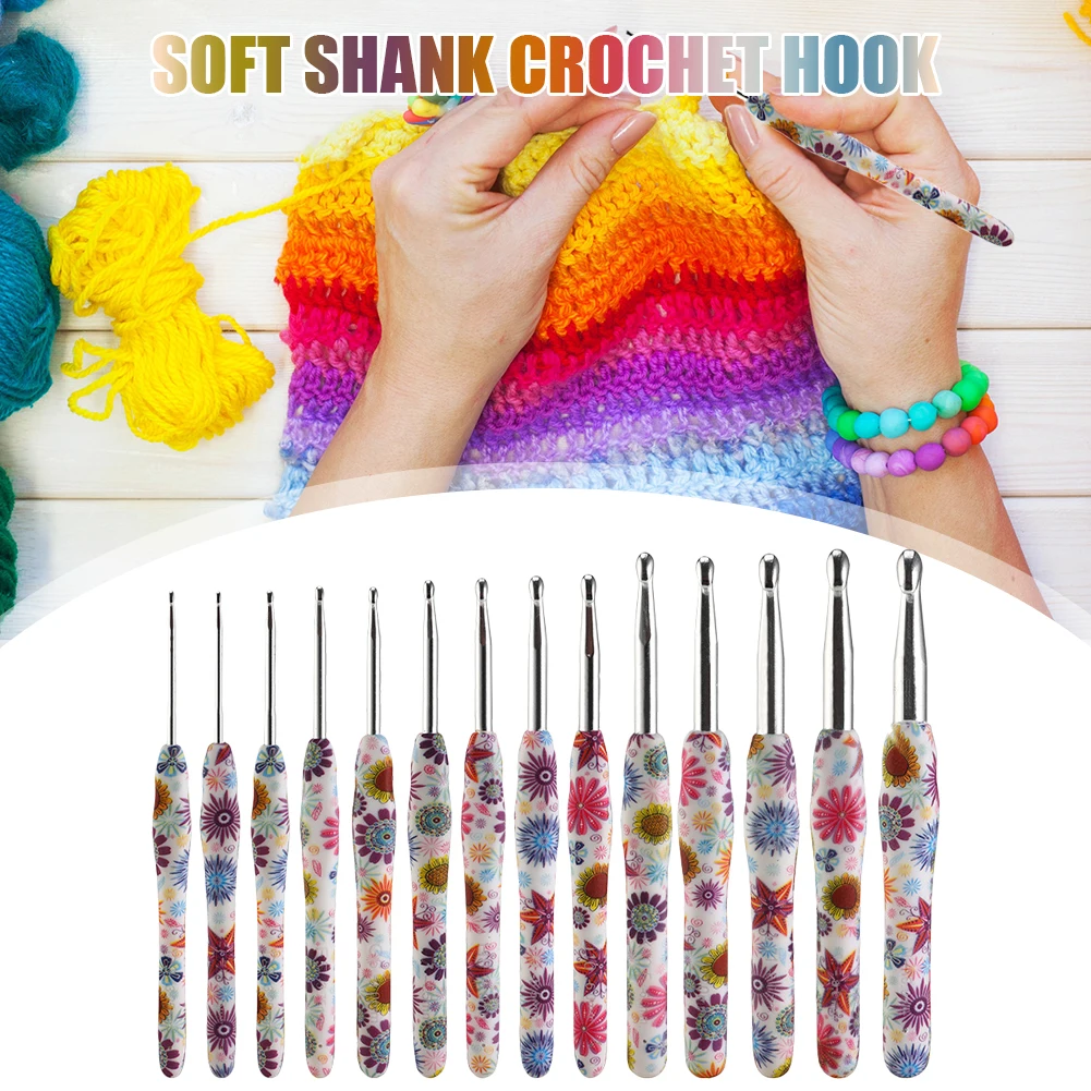 14pcs Knitting Needles Set Soft Handle Aluminum Crochet Hooks Needles Handmade Crafts Festival Gift for DIY Scarves Gloves