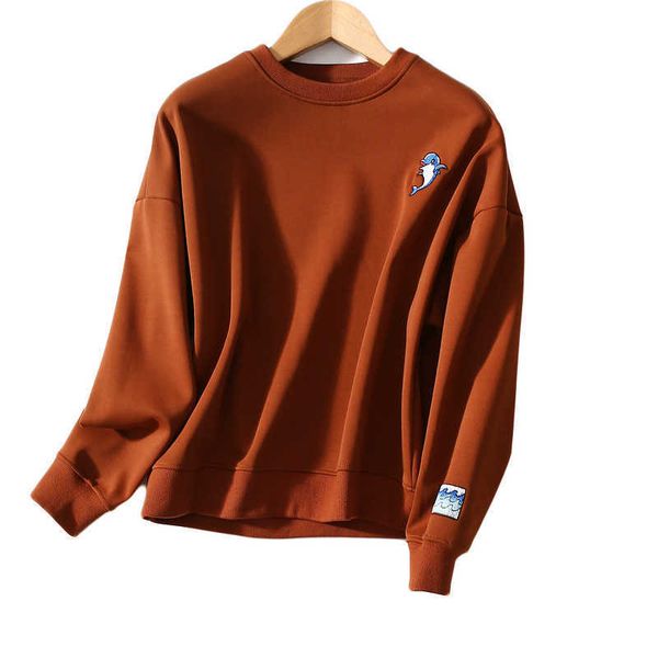 fashion fleece hoodies q11 super cute dolphin embroidery channel goods ~ warm plush base round neck loose sweater, Black