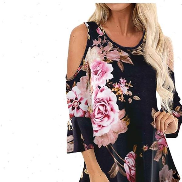 fashion floral print casual womens blouses off shoulder summer loose female women 3 4 sleeve shirt blusas pullover, White