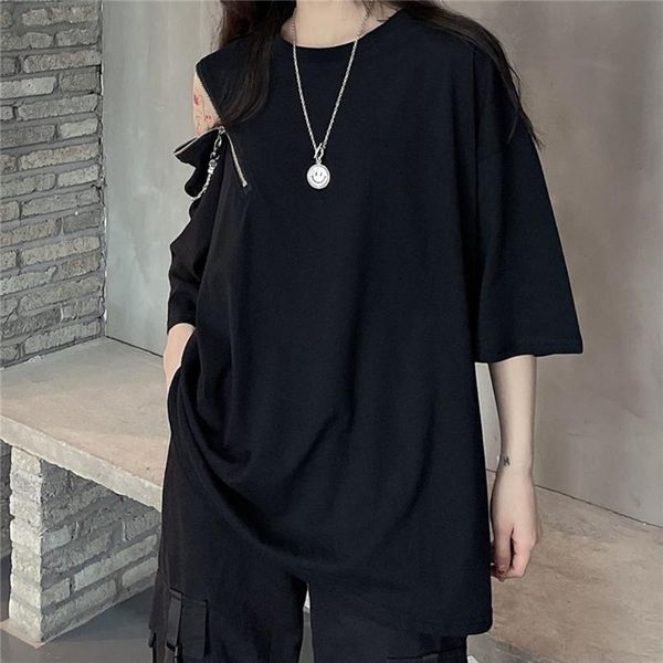 fashion high street t-shirt 2021 summer loose casual designer thin hollow out zipper chain strapless round neck women's, White