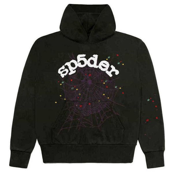 fashion hoodie designer hooded sweater bubble print 555 pullover coat men women heavy fabric spider web long sleeve sweatshirt, Black
