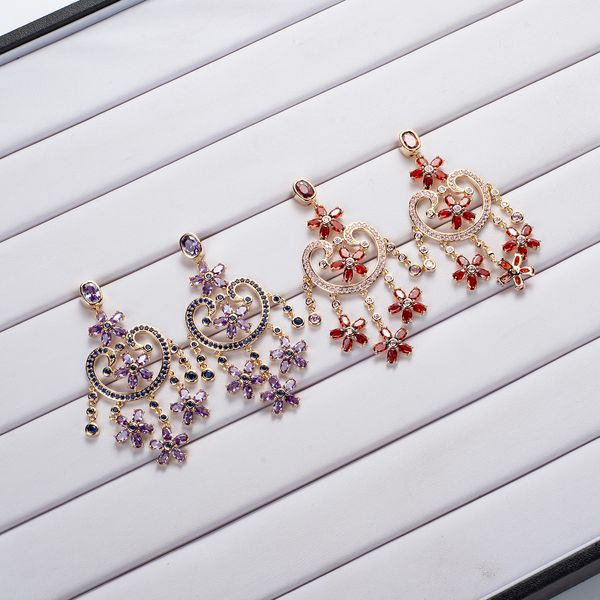 fashion-irect s925 silver needle micro inlaid zircon ruyi flower tassel earrings temperament wild copper-plated real gold earrings