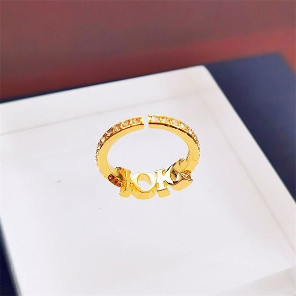 fashion jewelry online 2022 letter diamond adjustable fashion temperament simple ring female, Silver