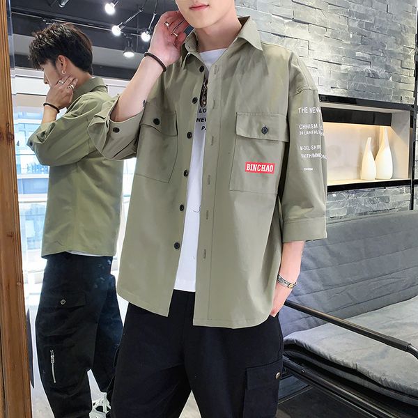 shirt tooling men's summer 2021 new personality fashion brand medium sleeve cotton loose casual, White;black
