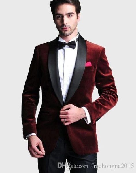 fashion latest handsome one button dark red velvet groom tuxedos shawl lapel groomsmen man wedding prom dinner suits (jacket+pants, White;black