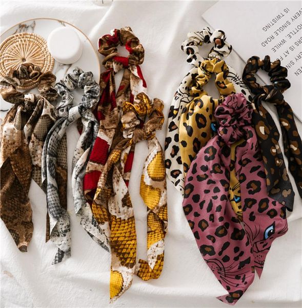 fashion leopard print scrunchies hair bands polka dot snake skin ribbon chiffon elastic hair rope scrunchy ponytail holder for w5315756, Black;brown