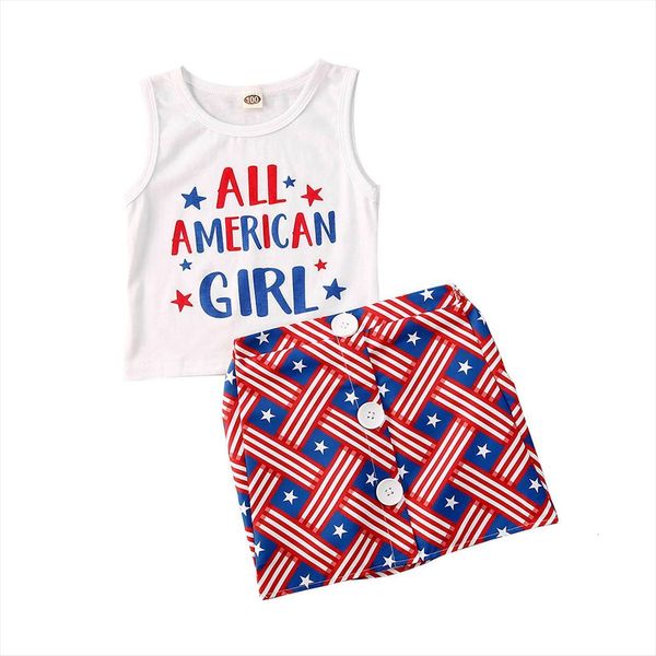 baby girls summer two piece suit letter stripe printing sleeveless short skirt, White