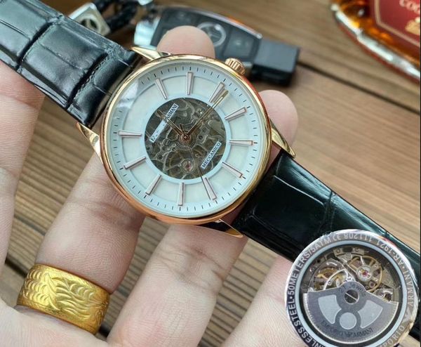 fashion men's watch premium luxury designer watch brand automatic winding 41mm flywheel mechanical watch leather strap men's gift, Slivery;brown