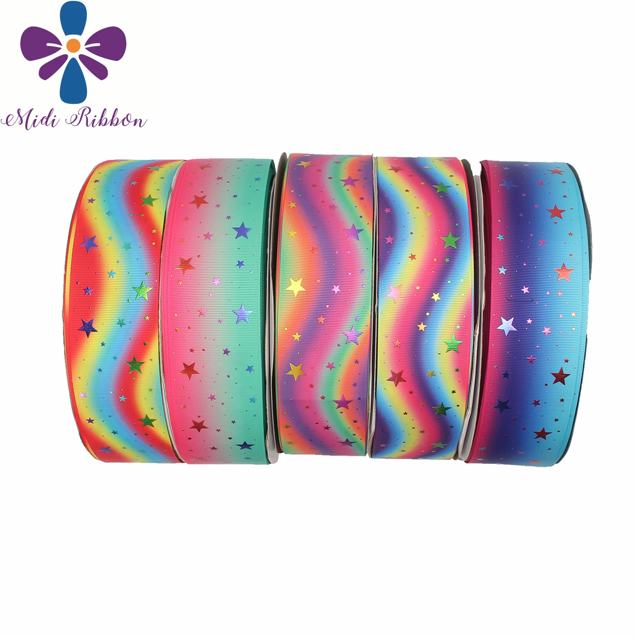 2"50mm Little Star Rainbow Foil Gradient Color Printed Grosgrain Ribbon DIY Hair Bowknots Christmas Party Decor 50yards/roll