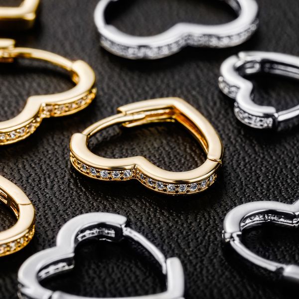 fashion men women earrings gold silver ice out cz diamond heart hoops earrings for men women nice gift, Golden;silver