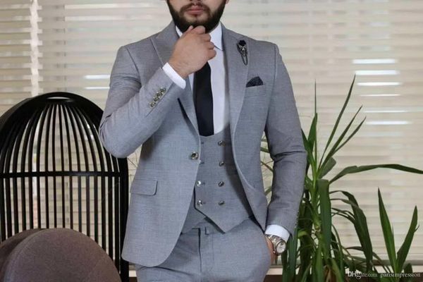 fashion slim fit grey groom tuxedos excellent men wedding tuxedos men formal business prom party suit(jacket+pants+tie+vest)881, Black;gray
