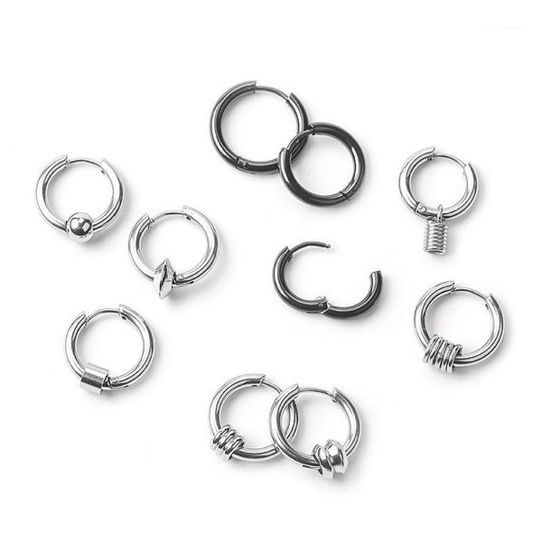 fashion small black stainless steel hoop earrings for men tiny circle round earring homme jewelry1, Golden;silver