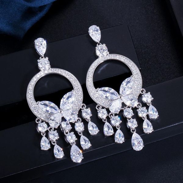 fashion sparkling charm tassel butterfly diamond earring designer for woman yellow red aaa cubic zirconia copper bride wedding eng227c, Golden
