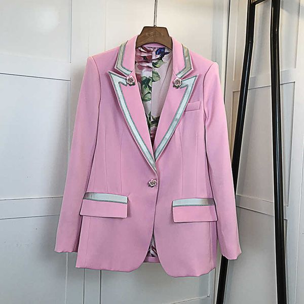 fashion star style blazer women's single button floral liner rose outer coat pink 210526, White;black