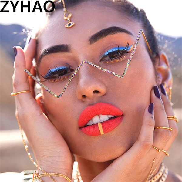 fashion sunglasses frames 2021 lensless diamond eye glasses women metal clear triangle decorative cat frame female eyeglasses, Black