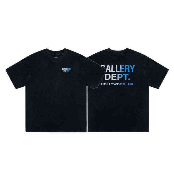 fashion t shirs galleryes couples american brand washed old letters gradient printing short sleeve loose casual men's women's shir, White;black
