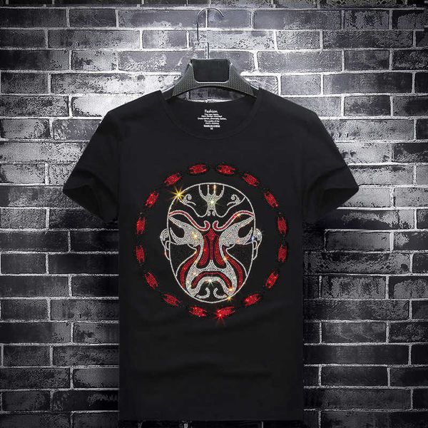 fashion t shirt 2021 summer guochao beijing opera facial mask drilling short sleeve men's chinese style half youth top, White;black