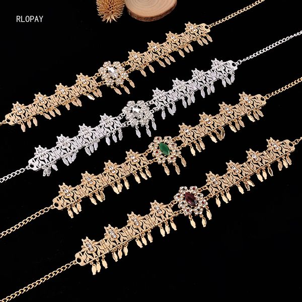 fashion tassels wedding hair accessory arabic style women band metal head pieces with crystals jewelry wedding 220804, Slivery;golden