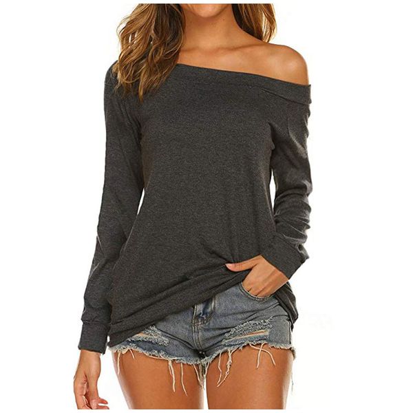 fashion tunic t-shirt off shoulder tee casual spring winter ladies solid o-neck female women long sleeve shirt blusas, White