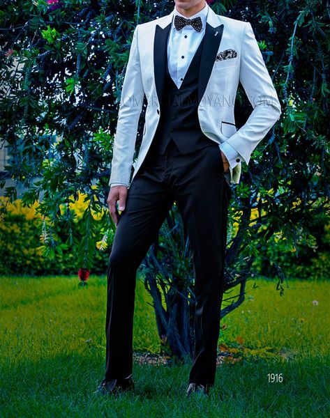 fashion white 3 piece suit men wedding tuxedos handsome groom tuxedos with peak lapel one button men blazer(jacket+pants+tie+vest) 506, Black;gray