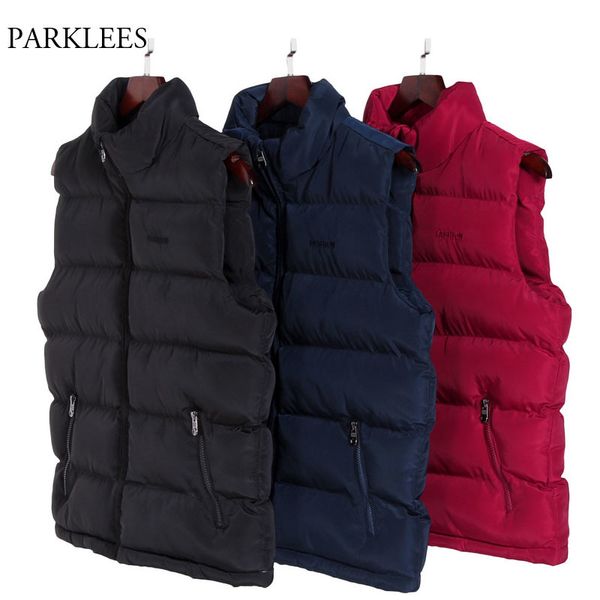 fashion winter mens vest solid sleeveless cotton-padded hommes veste casual slim thick warm outwear comfortable outwear 6xl 210524, White;black