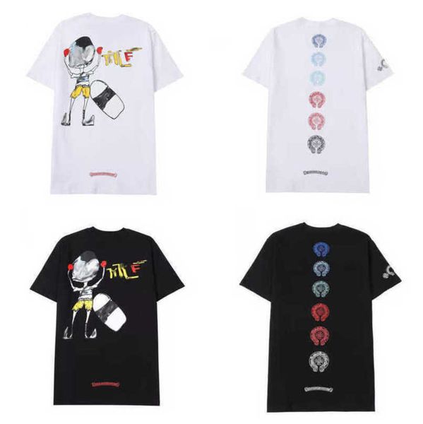 fashion women's luxury t shirt ch brand tees men women sanskrit letter short sleeve horseshoe couple t-shirts designer polos tshirts c, White