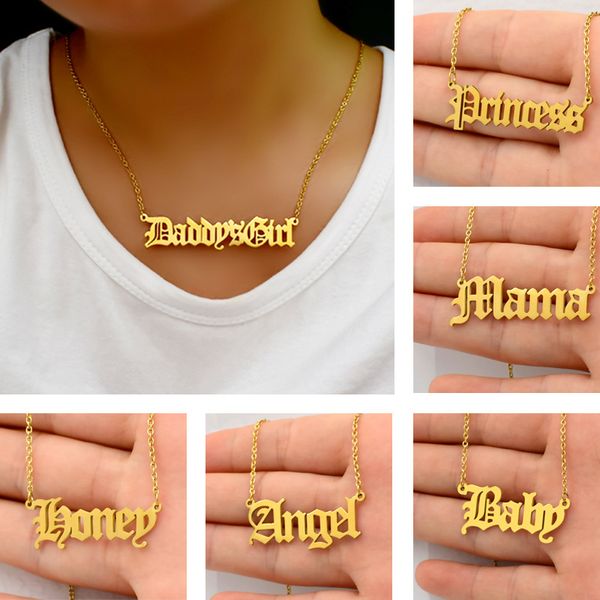 fashion women 316l stainless steel ancient letter pendant necklace babygirl angle priness brat alphabet chain necklace jewelry gift, Silver
