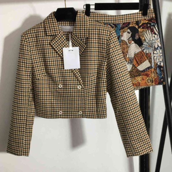 fashion women designer lapel suit jacket shorts dress 2 piec suits checkered stitching jacquard high-end coat pants letter logo brand womens, White