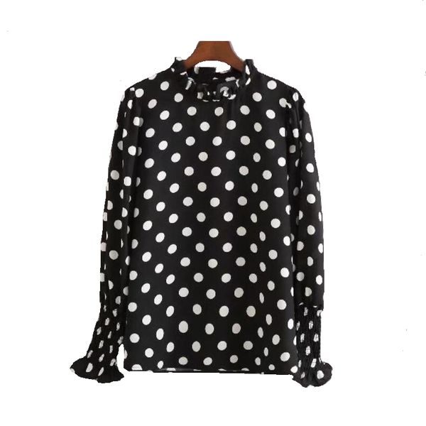 fashion women frill collar polka dot printing shirt long sleeve blouses casual chemise femme blusas s2692 210430, White