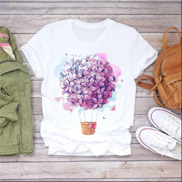 fashion women t shirt summer short sleeve casual white tee floral flower printed aesthetics female vogue t shirts