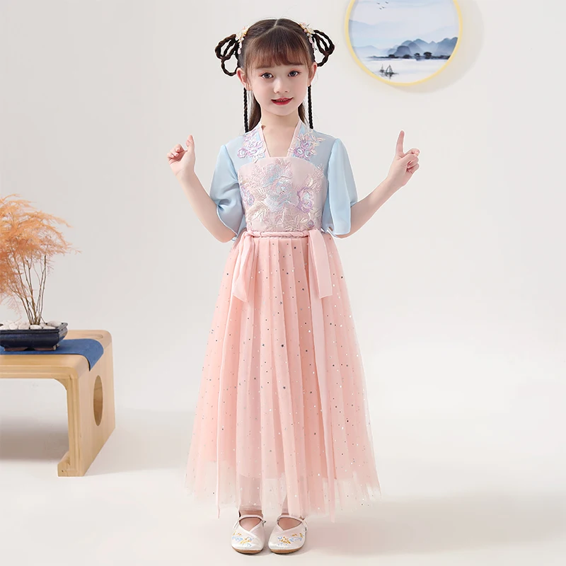 Girls Hanfu Chinese Traditional Summer Clothing For Kids Han/Tang Dynasty Ancient Costume Children Cosplay Pink Hanfu DQL2267