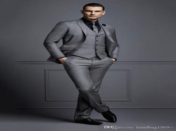 fashionable one button gray groom tuxedos notch lapel groomsmen man mens wedding suits jacketpantsvesttie d2061160642, Black;gray