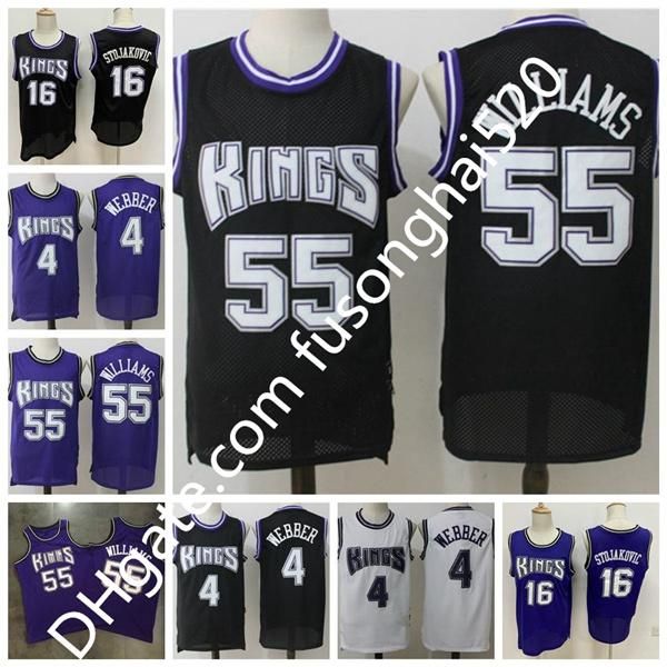 fast shipping retro jason 55 williams basketball jerseys #4 chirs webber shirts peja 16 stojakovic jersey stitched, Black;red