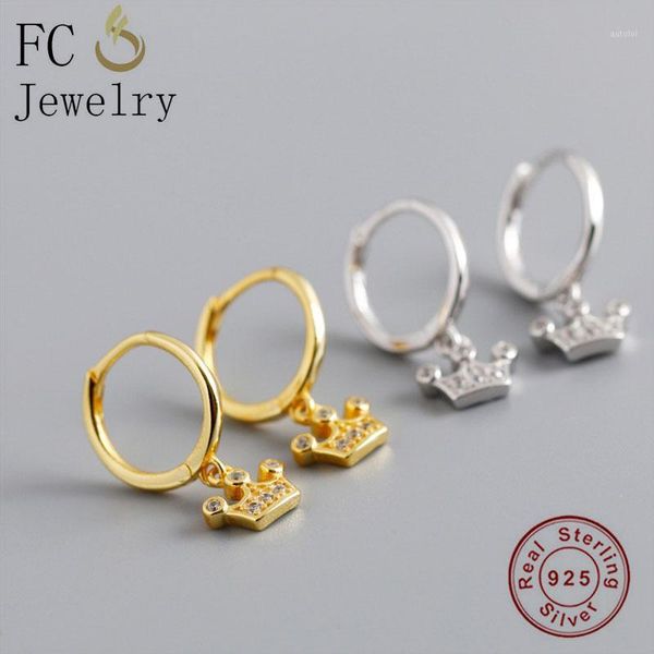 fc jewelry 925 silver tiny golden princess crown cubic zircon pendant piercing hoop earring for women ear ring 2020 new arrival1, Golden;silver