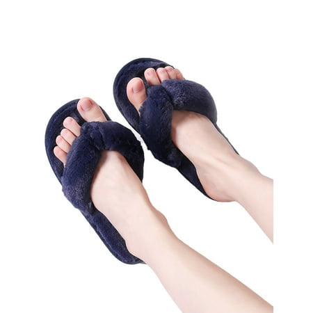 Lacyhop Ladies Womens Flip Flop Slippers Plush Indoor Thong Home Spa Toe Shoes