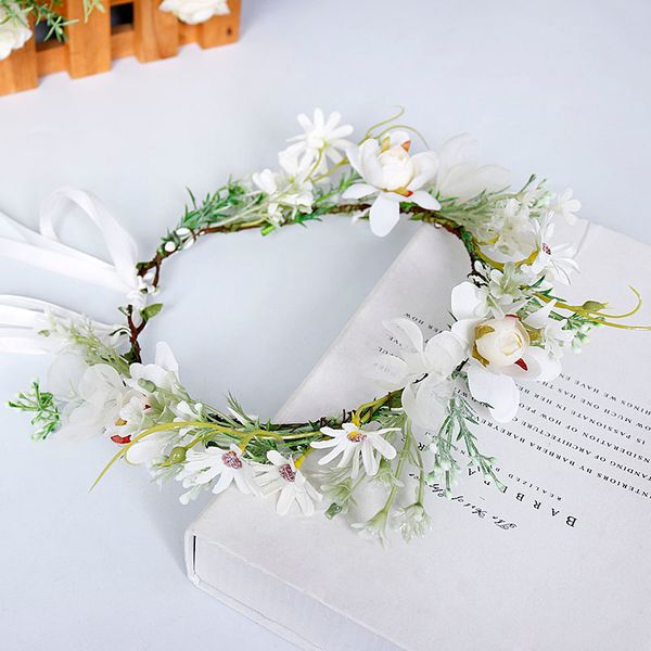 festival wreath, bride's headdress, white small daisy, fresh green leaf lace up hair accessory, bridesmaid headdress, hair hoop hh-0031, Silver