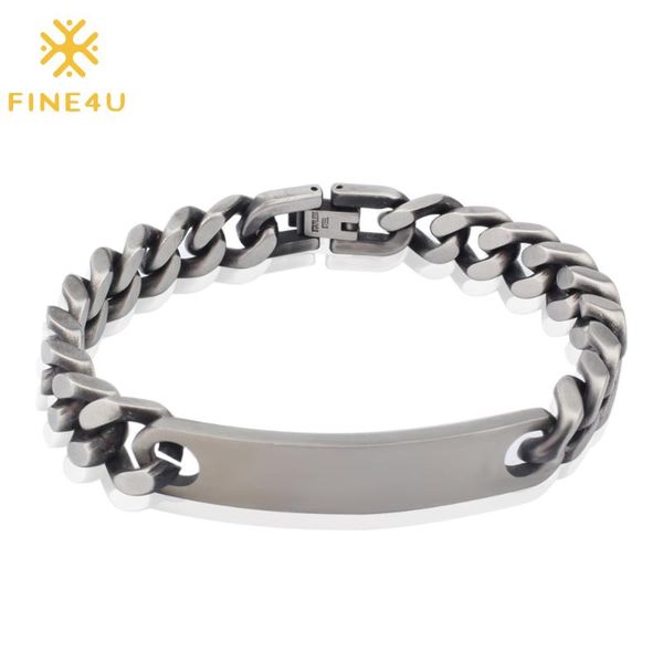 fine4u b138 classic smooth bangle link men's bracelet wide men bracelet figaro chain bracelets drop shipping, Black