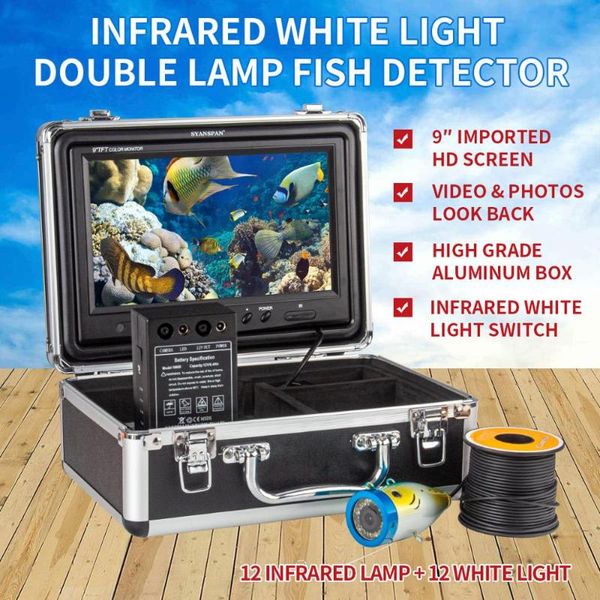 fish finder ice underwater fishing camera 7" inch 15m double lamp for ice/sea/river