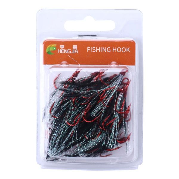 fishing hooks hengjia 20pcs high carbon steel treble lure black feather red tackle accessories