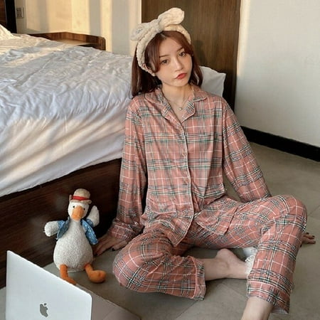 CoCopeaunt Japanese Korean Grid Printed Girls Pajamas Set Cute Spring Long Sleeve Leisure Sleepwear For Women Loose Nightwear Homewear Suit