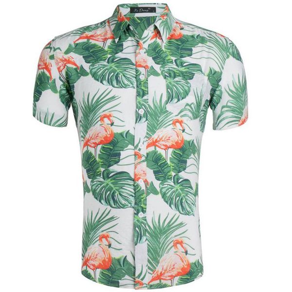flamingo print hawaiian style men's short-sleeved shirt geometric print party beach daily casual lapel, White;black