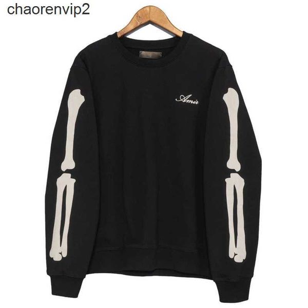flocking bone casual pattern tshirt mens sweatshirt hoodie japanese korean streetwear o-neck men sweatshirt, Black