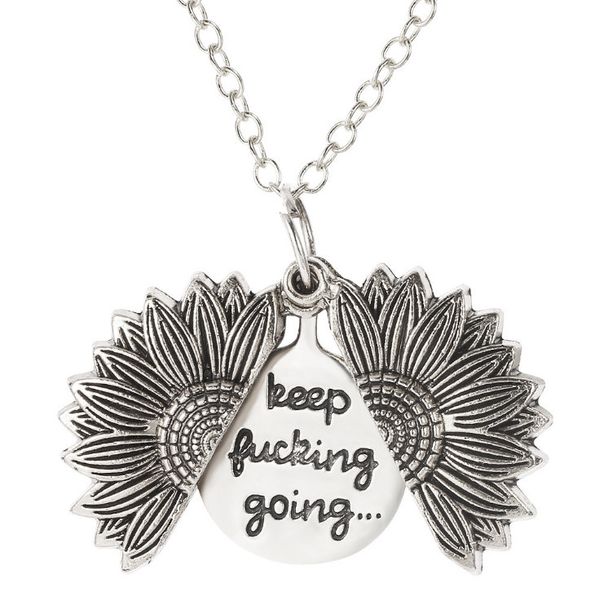 flower sunflower double lettering necklace open clavicle chain jewelry, Silver