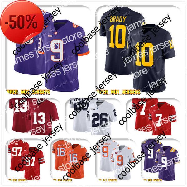 football jerseys ncaa travis etienne jr. 10 tom brady wolverines college football jersey lamar jackson mark ingram marquise brown justin, Black;red