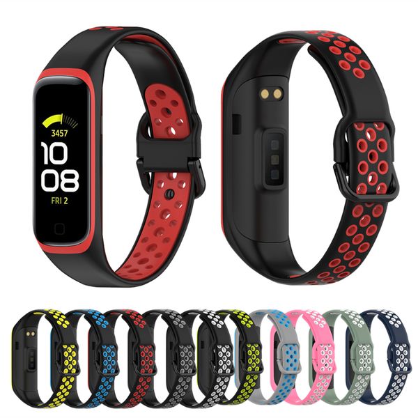 for samsung galaxy fit 2 watch band smart bracelet sport silicone strap breathable watchband galaxy fit2 sm-r220 replacement wristband, Black;brown