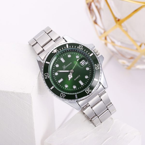 watches for men luxury fashion quartz watch waterproof, new green water ghost watch men's steel band calendar quartz watch