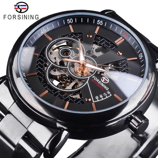 forsining racing sport watch fashion full black clock stainless steel luminous men's automatic watches brand luxury217u, Slivery;brown
