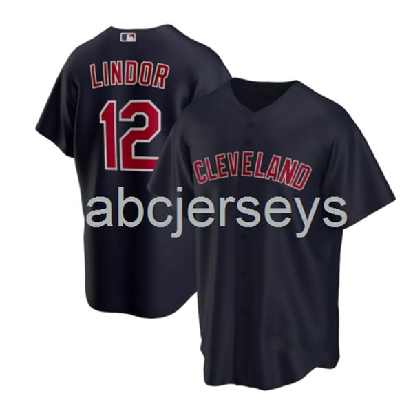 francisco lindor #12 navy baseball jersey xs-6xl, Black